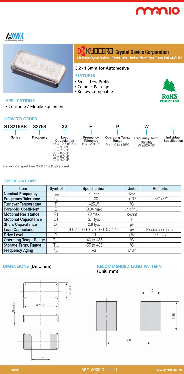 Crystal Device Corporation - Surface Mount Type : Tuning Fork ST3215SB