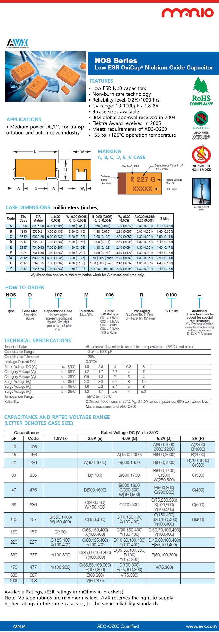 NOS Series (Low ESR OxiCap® Niobium Oxide Capacitor)