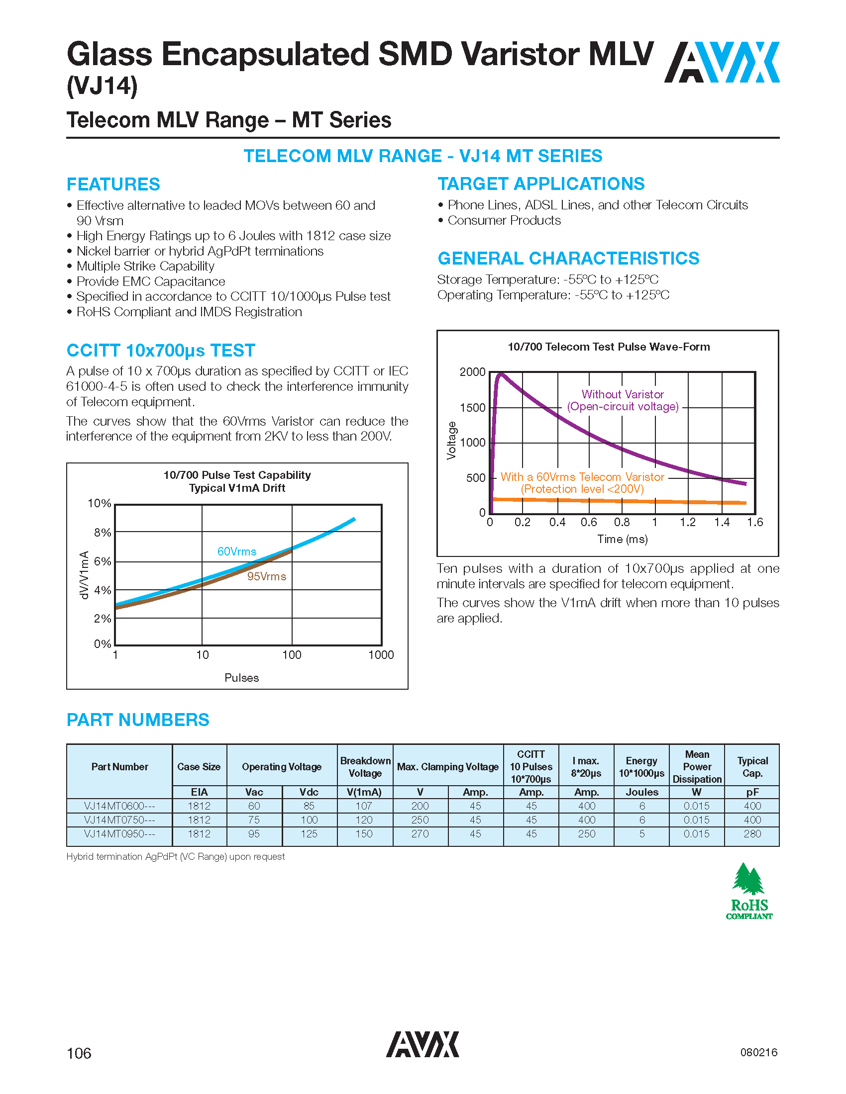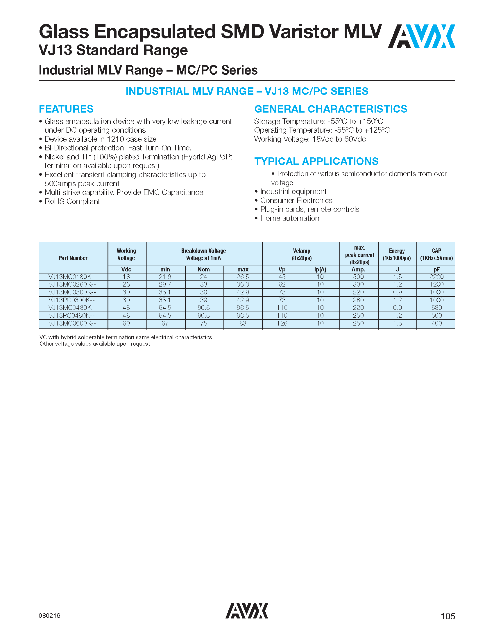Glass Encapsulated SMD Varistor MLV Datasheet
